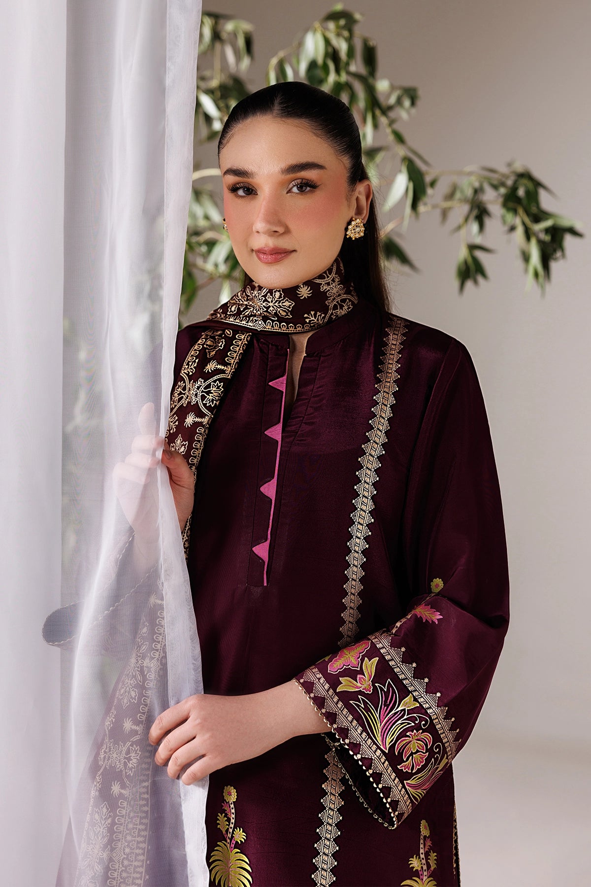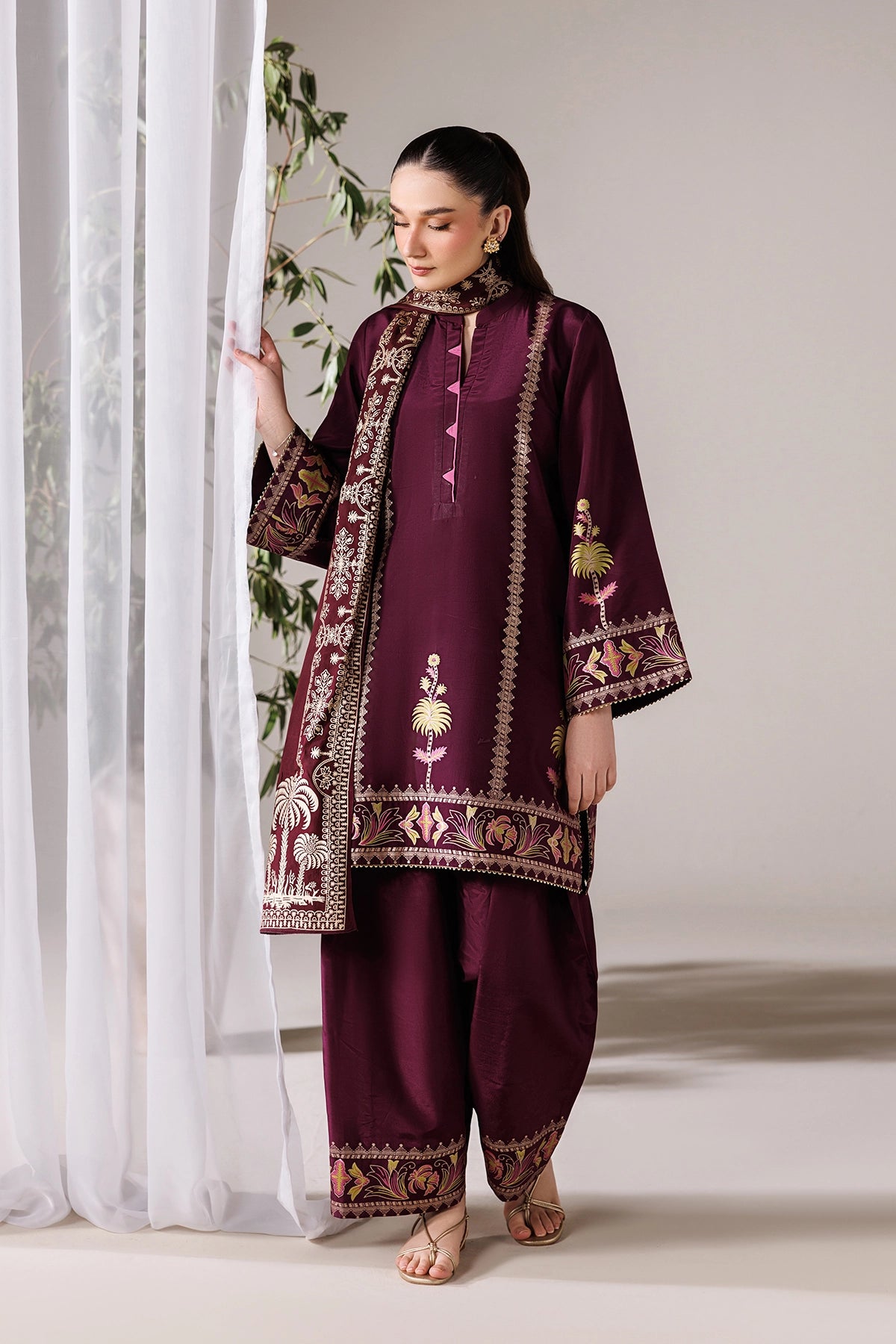 Fabric Definition-Shirt Fabric:Habotai Silk-Shalwar Fabric:Habotai Silk-Dupatta Fabric: Silk-Embellishment: Screen Printed With Lace WorkNote:-The actual shade might be slightly different due to different background lighting.