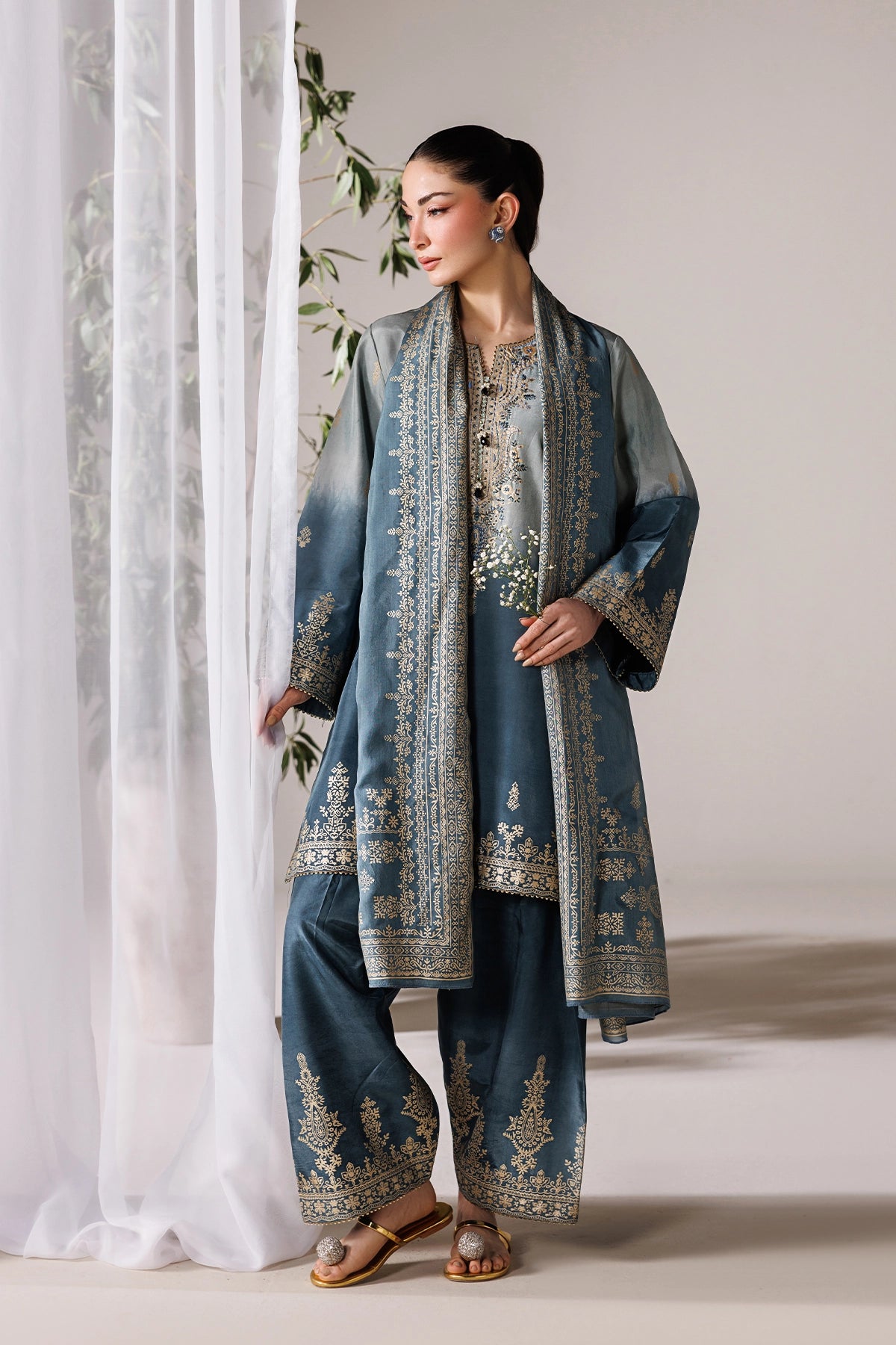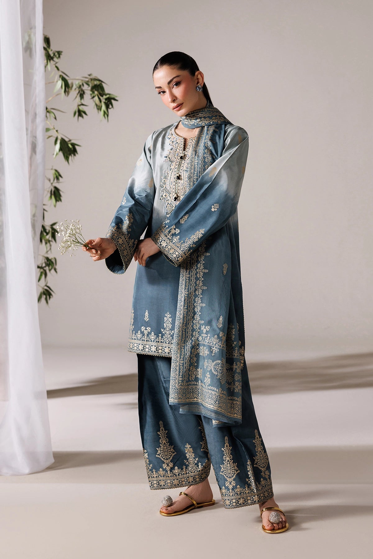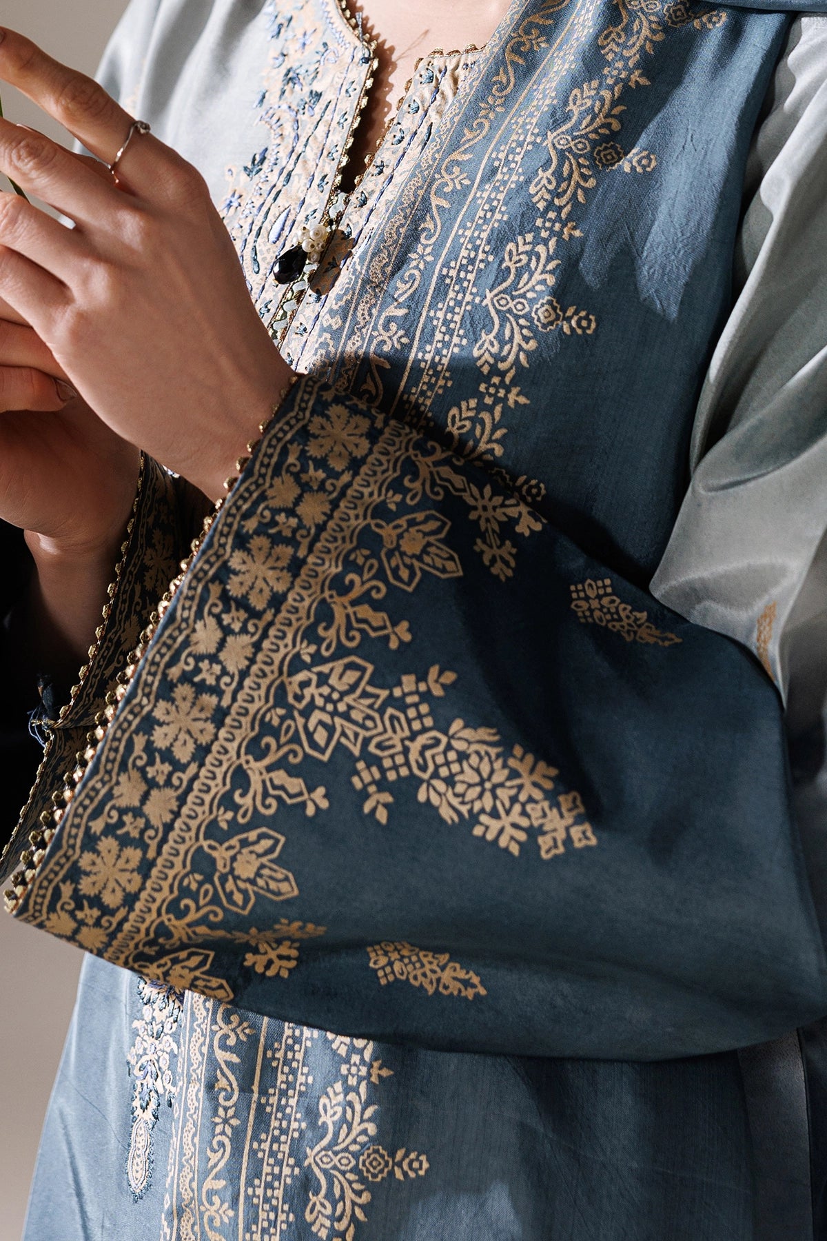 Fabric Definition-Shirt Fabric:Habotai Silk-Shalwar Fabric:Habotai Silk-Dupatta Fabric: Silk-Embellishment: Screen Printed + Embroidered (Hand Made) Note:-The actual shade might be slightly different due to different background lighting.