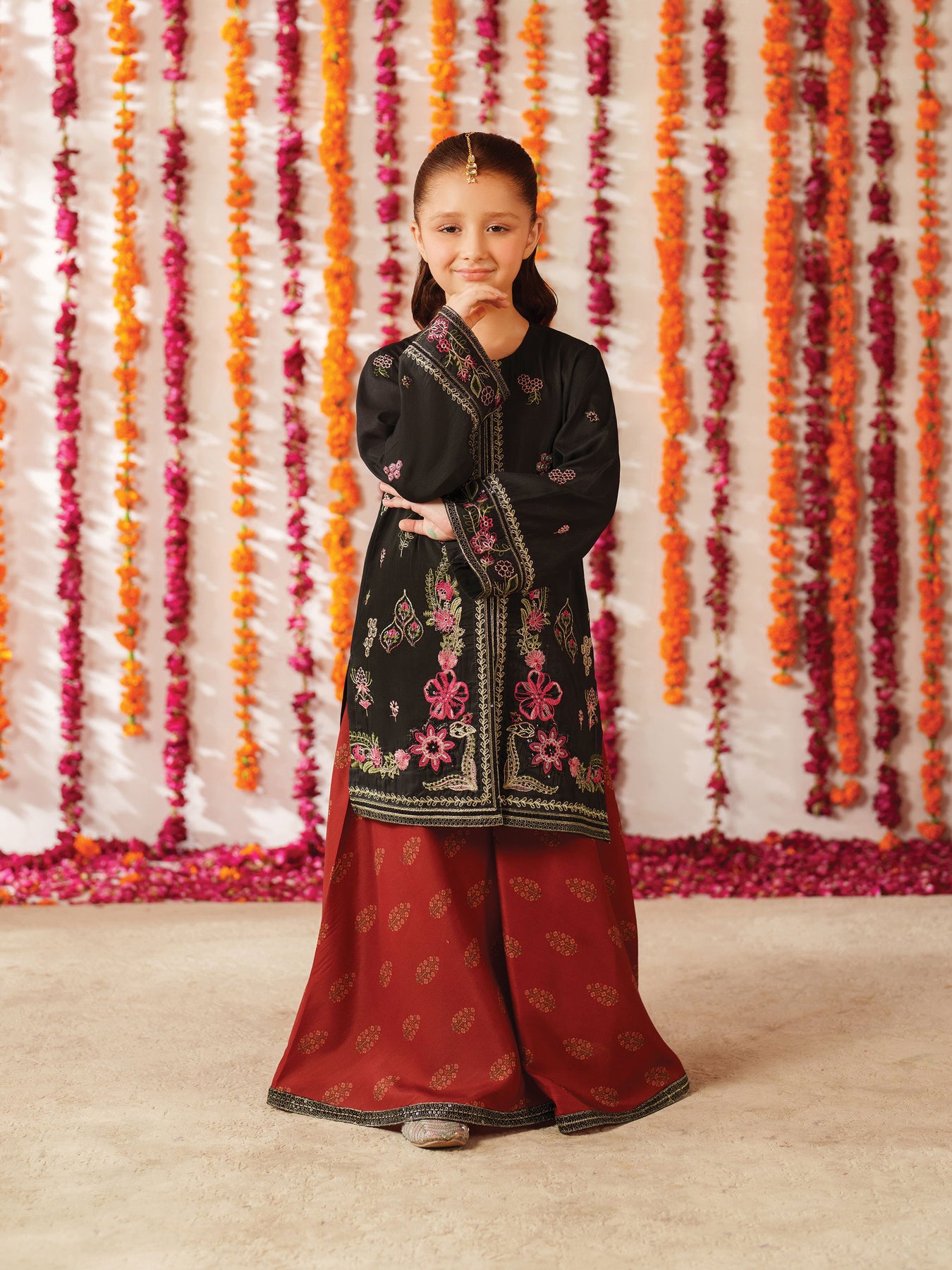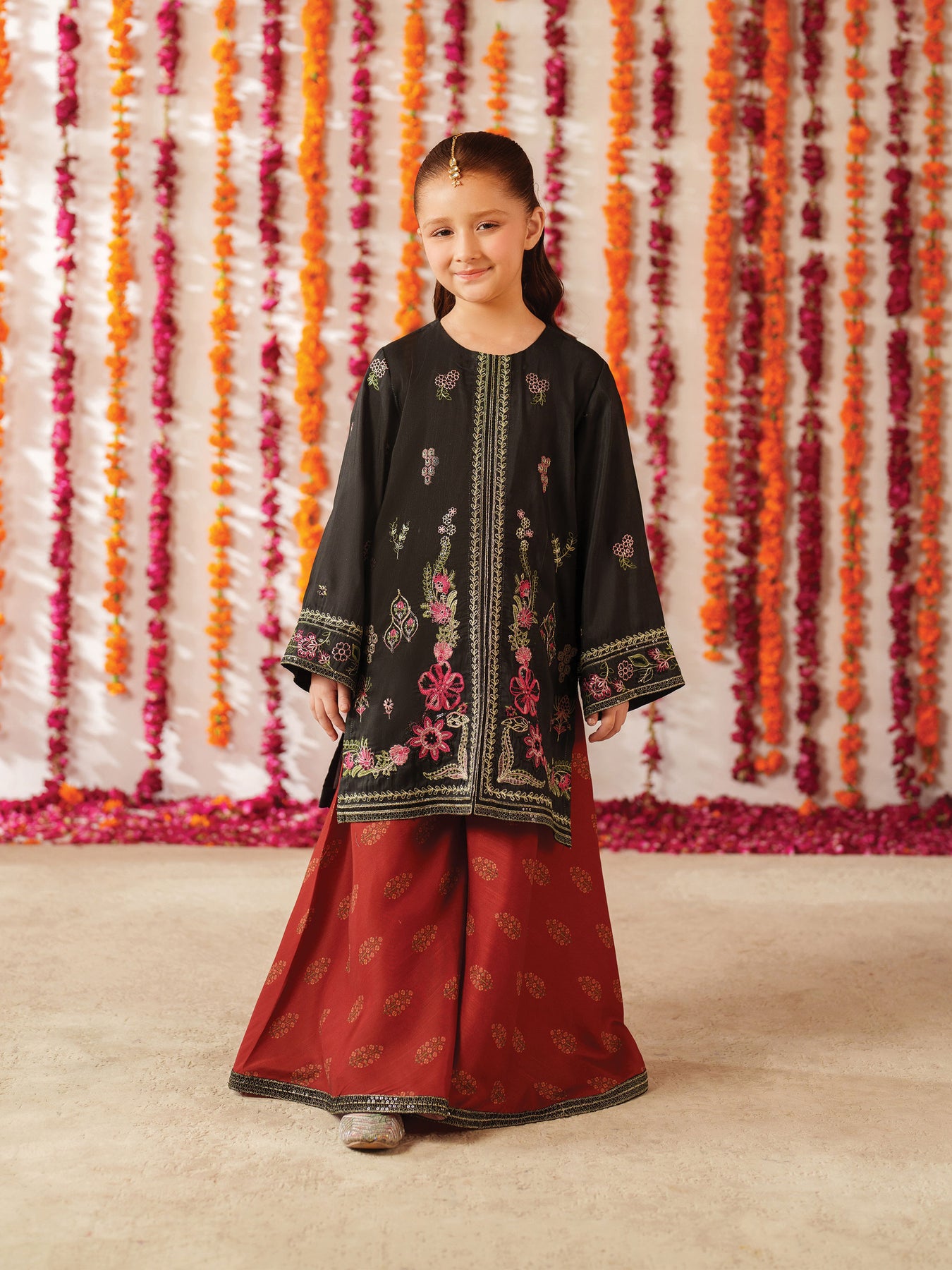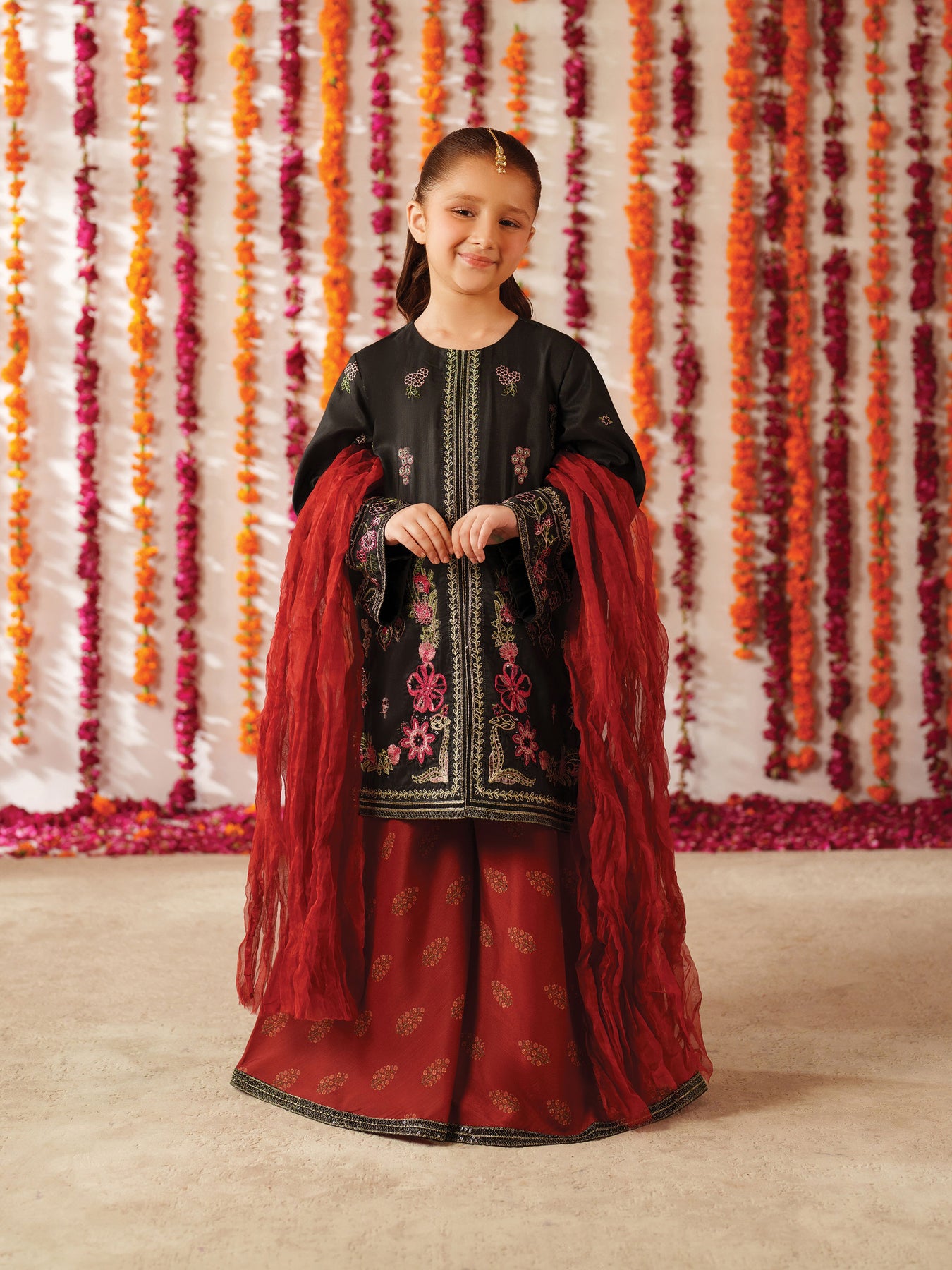 Fabric Definition-Shirt Fabric: Embroidered Silk-Gharara Fabric: Printed Silk-Dupatta: OrganzaNote:-The actual shade might be slightly different due to different background lighting.