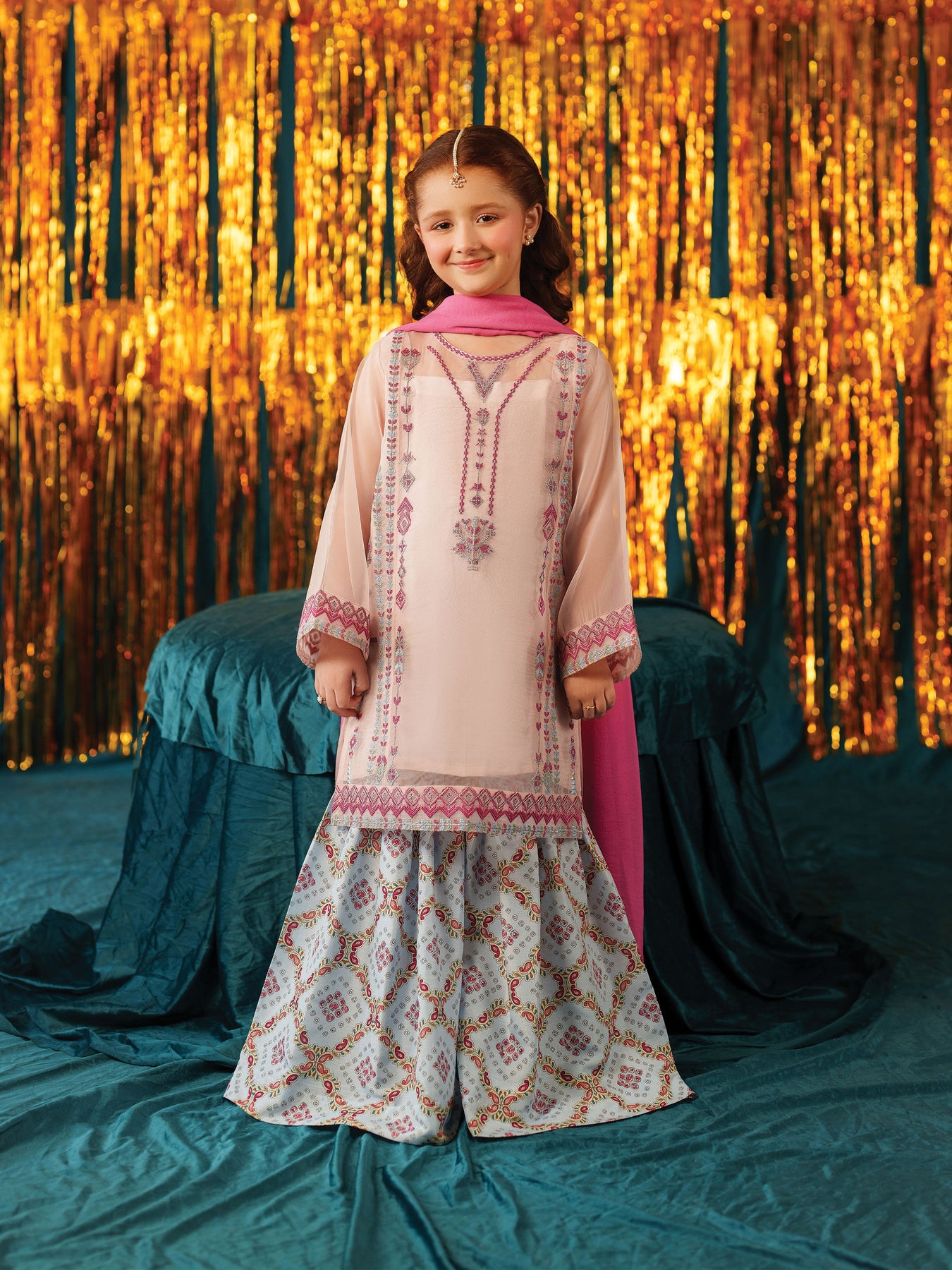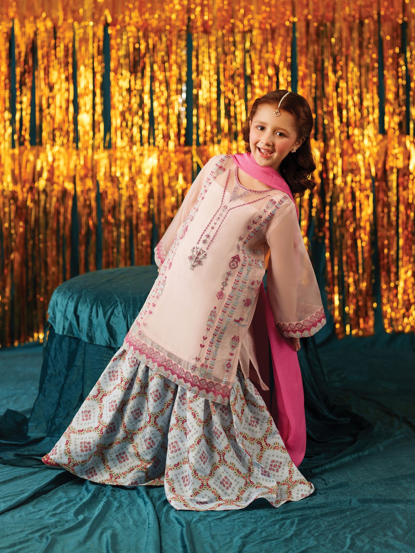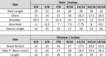 Fabric Definition-Shirt Fabric: Embroidered Organza with resham cotton inner-Gharara Fabric: Digital Printed Silk-Dupatta: ChiffonNote:-The actual shade might be slightly different due to different background lighting.